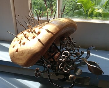 Birdbox studio and gallery is brand new, and free to visit whenever Leafy Hollow Botanicals is open. Or by appointment with Tom.