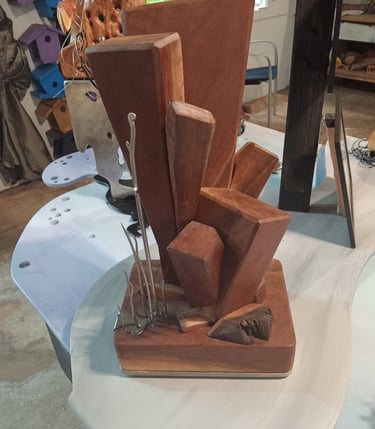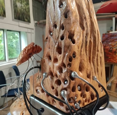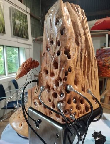 Explore the sculptures at Birdbox gallery - touch them, turn them.